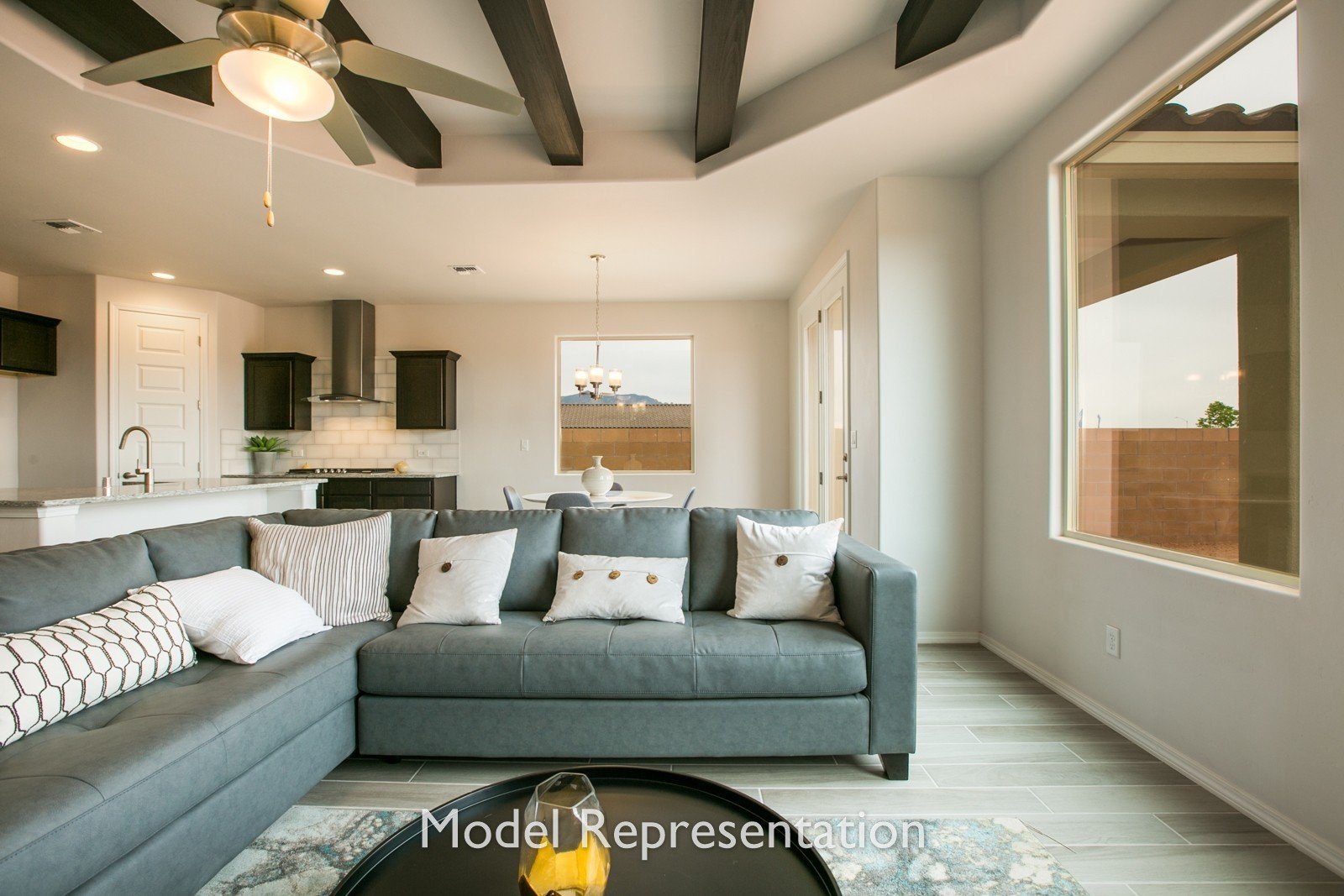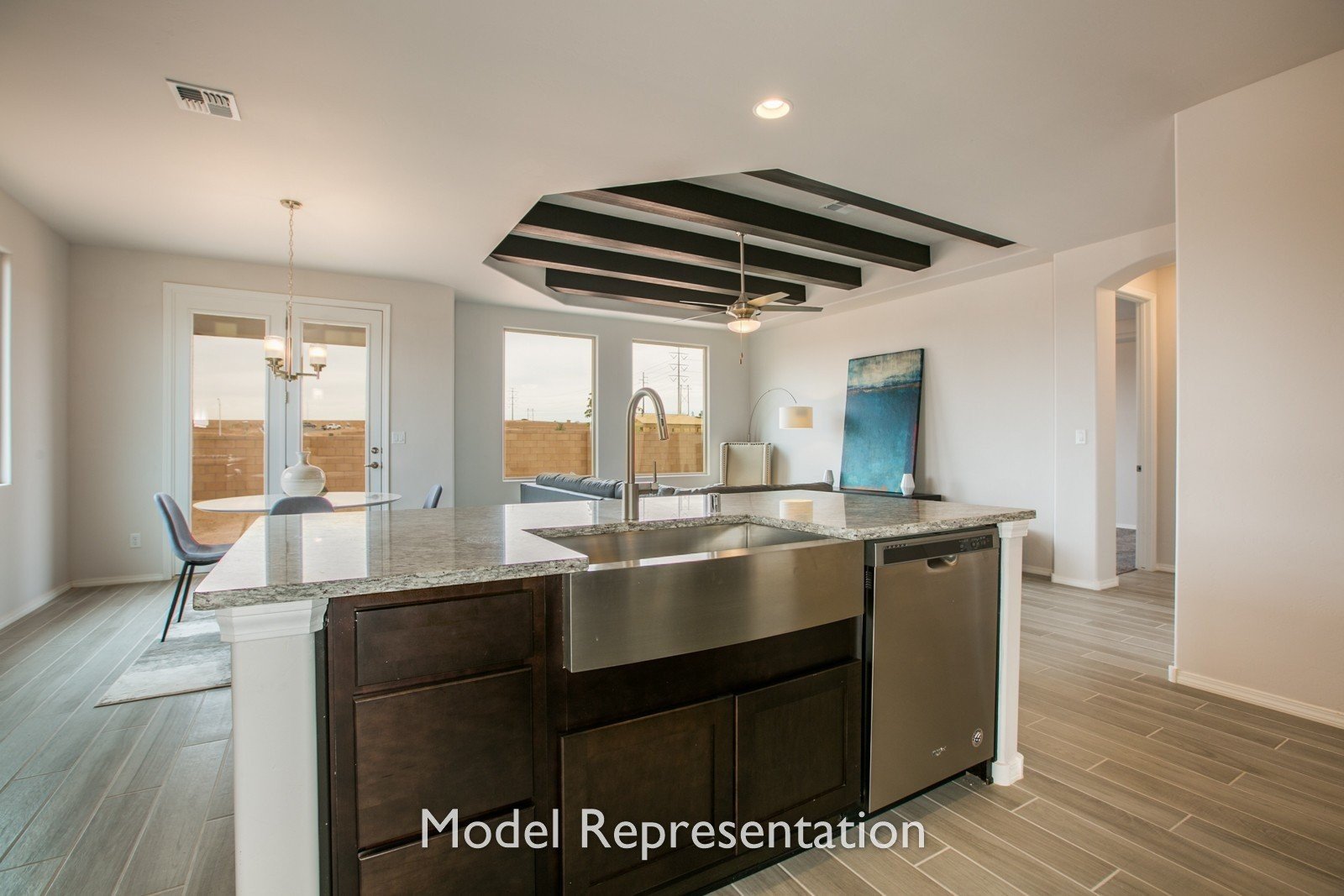 - Personalize your home with options such as a distinctive ceiling beam treatment in the great room, luminous 3-panel stacking door, gourmet kitchen, powder room for guests, and extended outdoor living areas