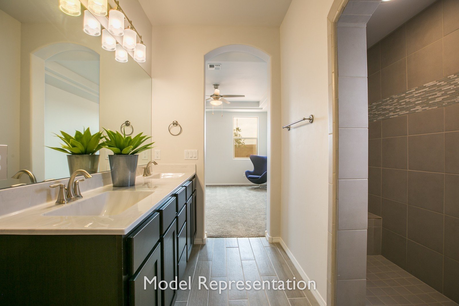 - Primary suite includes a luxurious bathroom with dual vanity, relaxing soaking tub, standing shower, and roomy walk-in closet