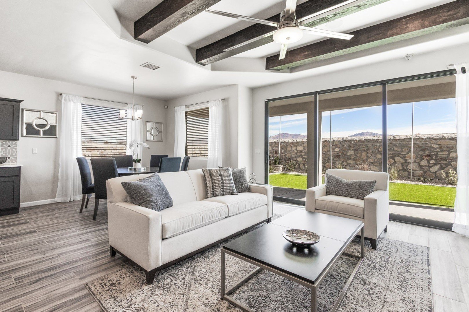 - Personalize your home with options such as a distinctive ceiling beam treatment in the great room, luminous 3-panel stacking door, gourmet kitchen, powder room for guests, and extended outdoor living areas