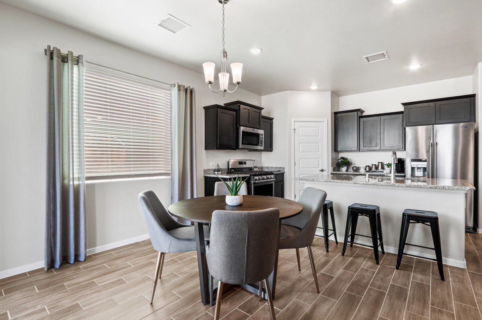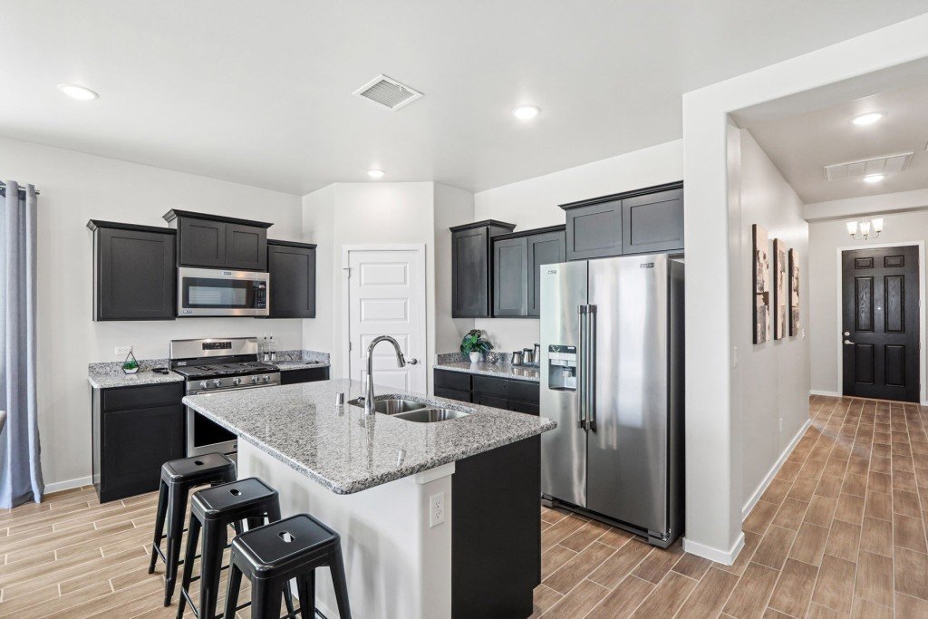 - Inviting entryway opens to a spacious kitchen, great room, and dining space