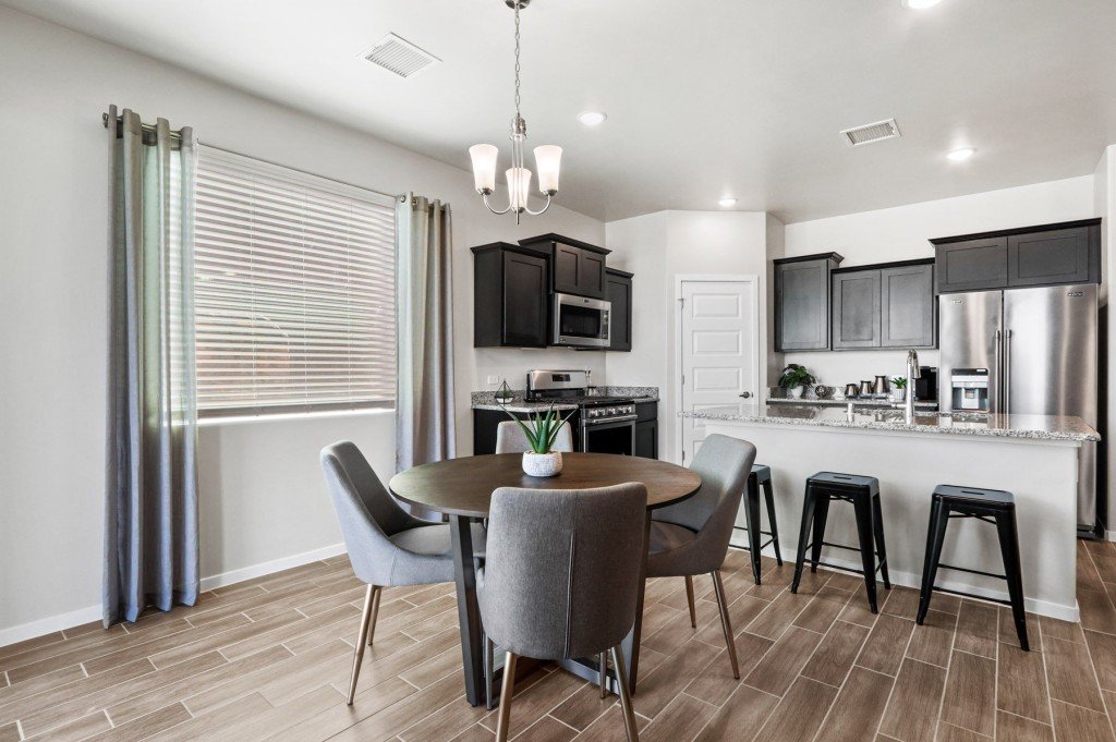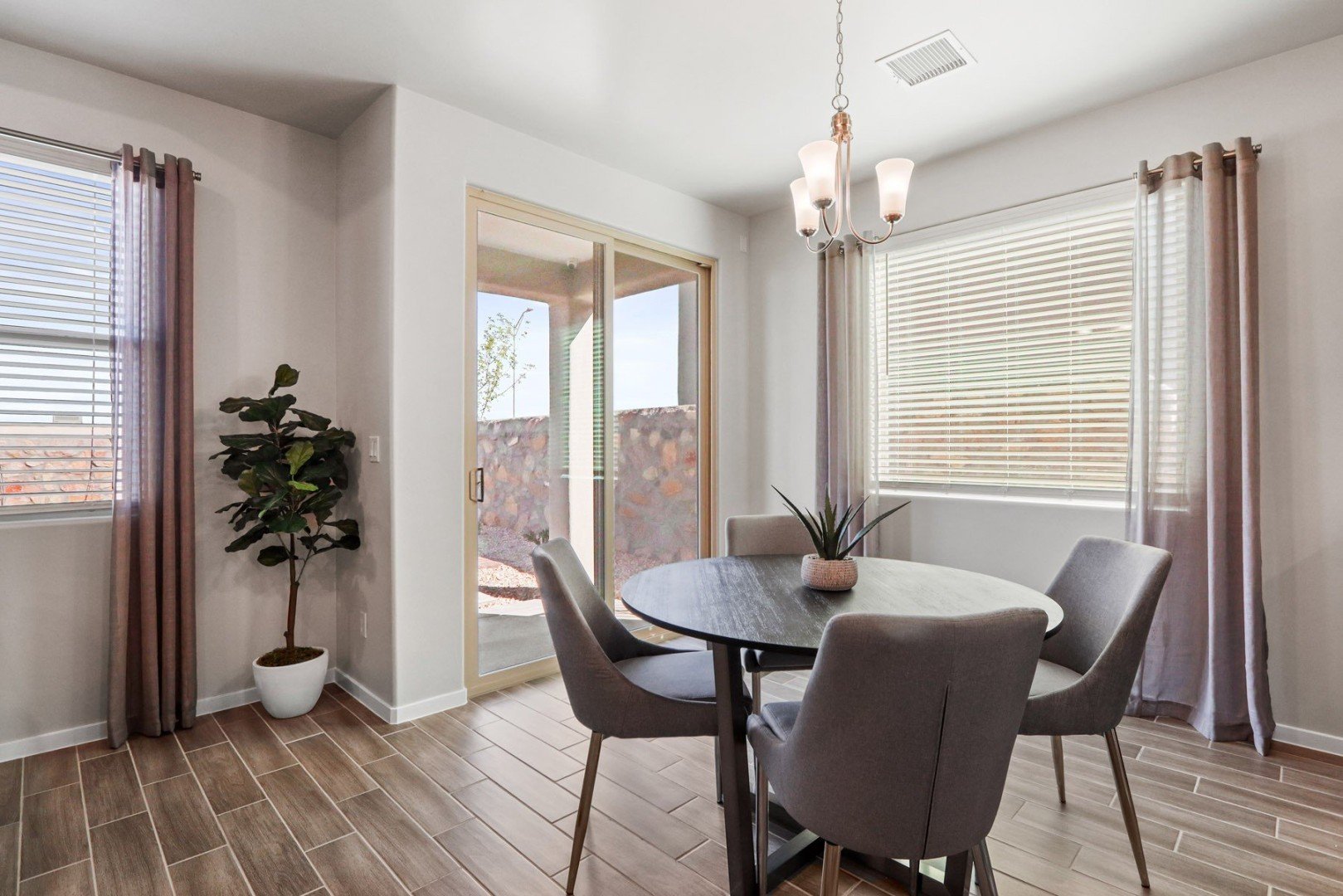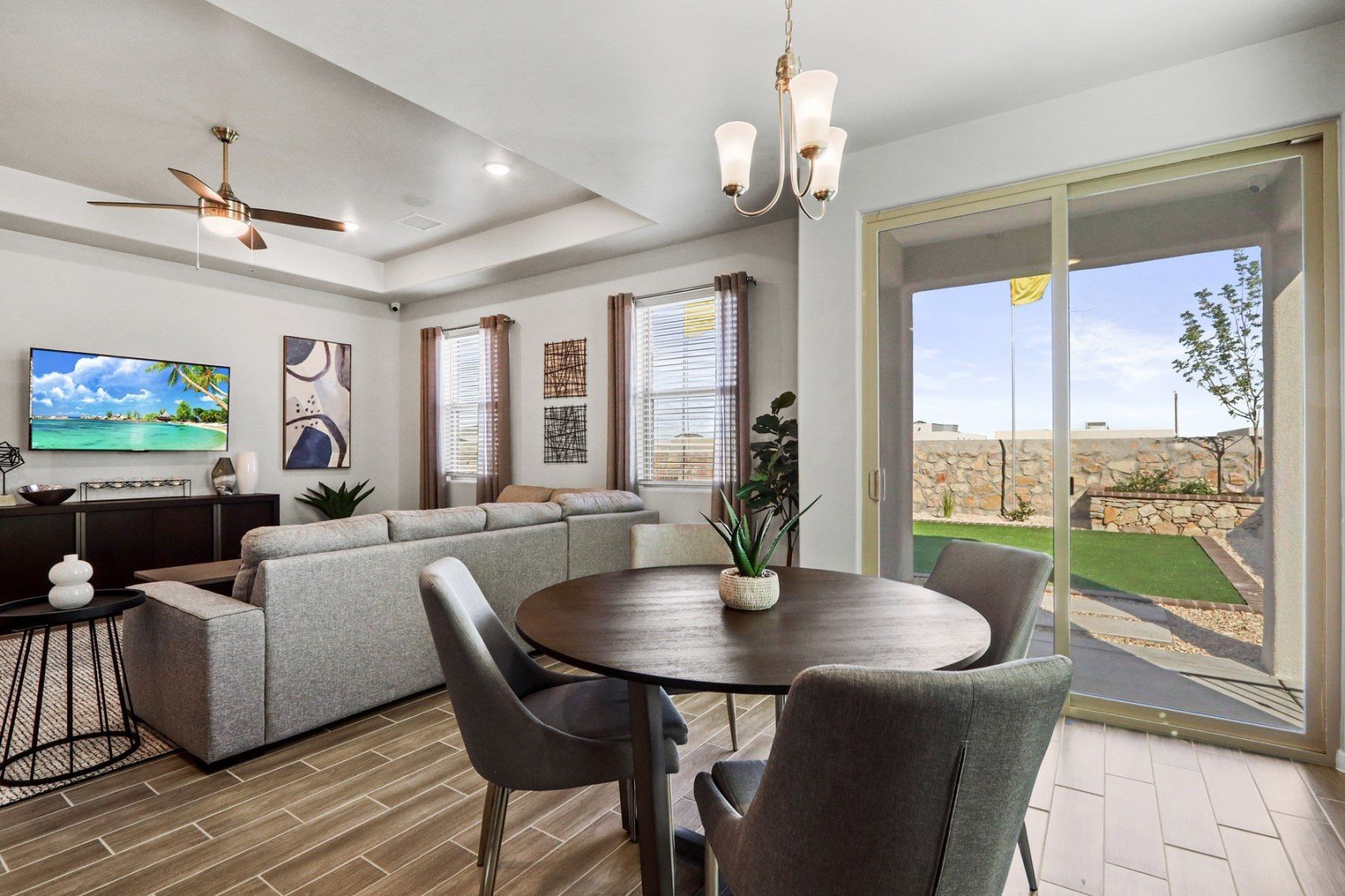 - Dining area opens to covered patio, blending the benefits of indoor/outdoor living