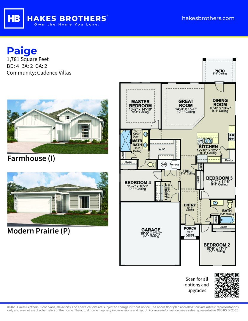 The floorplan images provided are for illustrative purposes only and may not represent the exact layout, dimensions, or features of an available home. All square footage and room dimensions are approximate and vary by elevation. Prices, plans, features, and options are subject to change without notice. See Sales Representative for details.