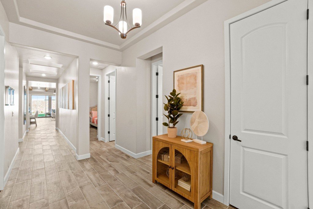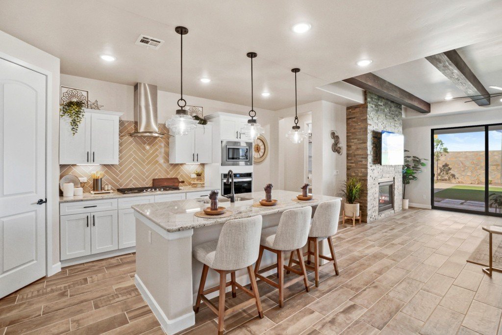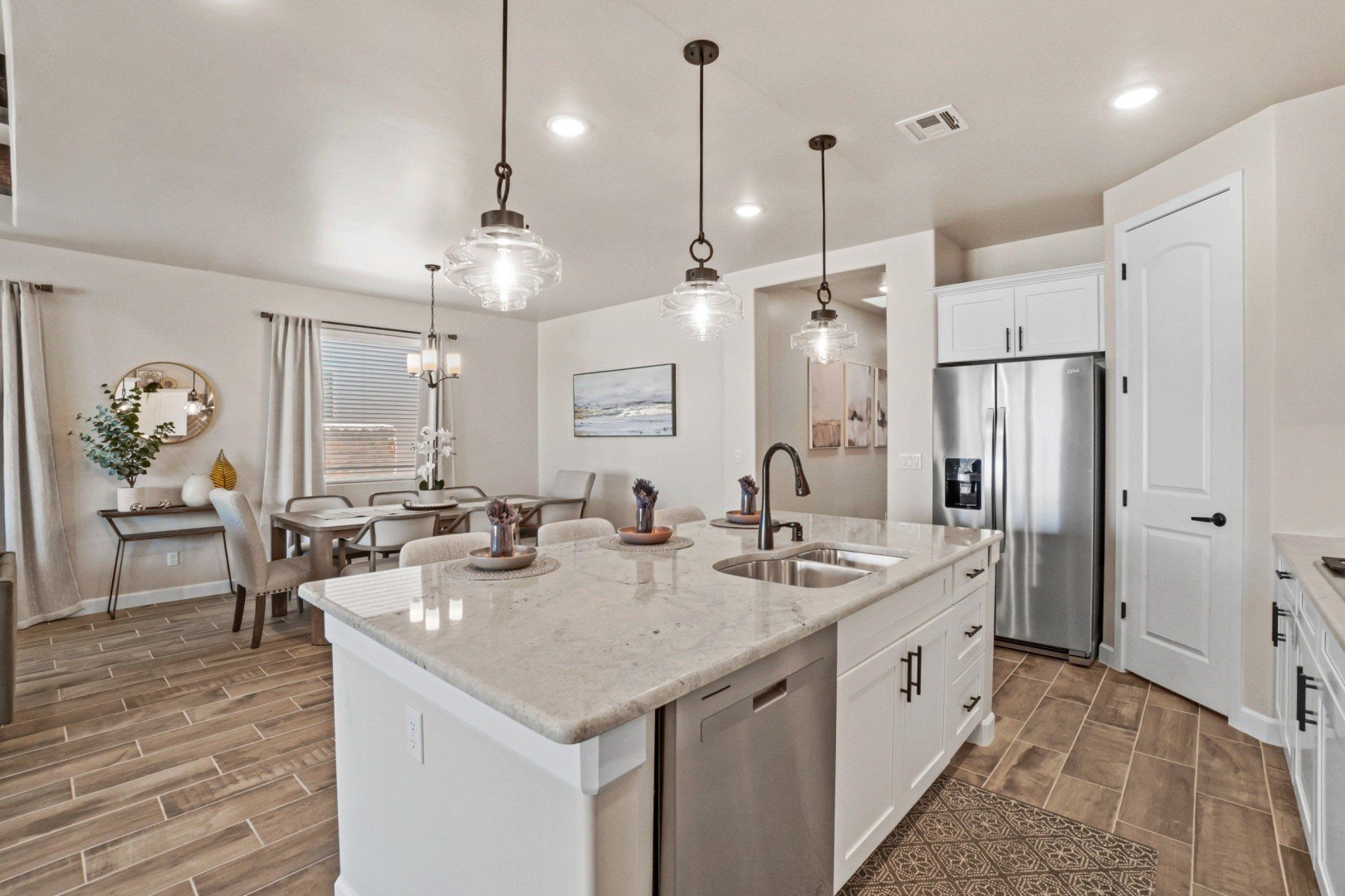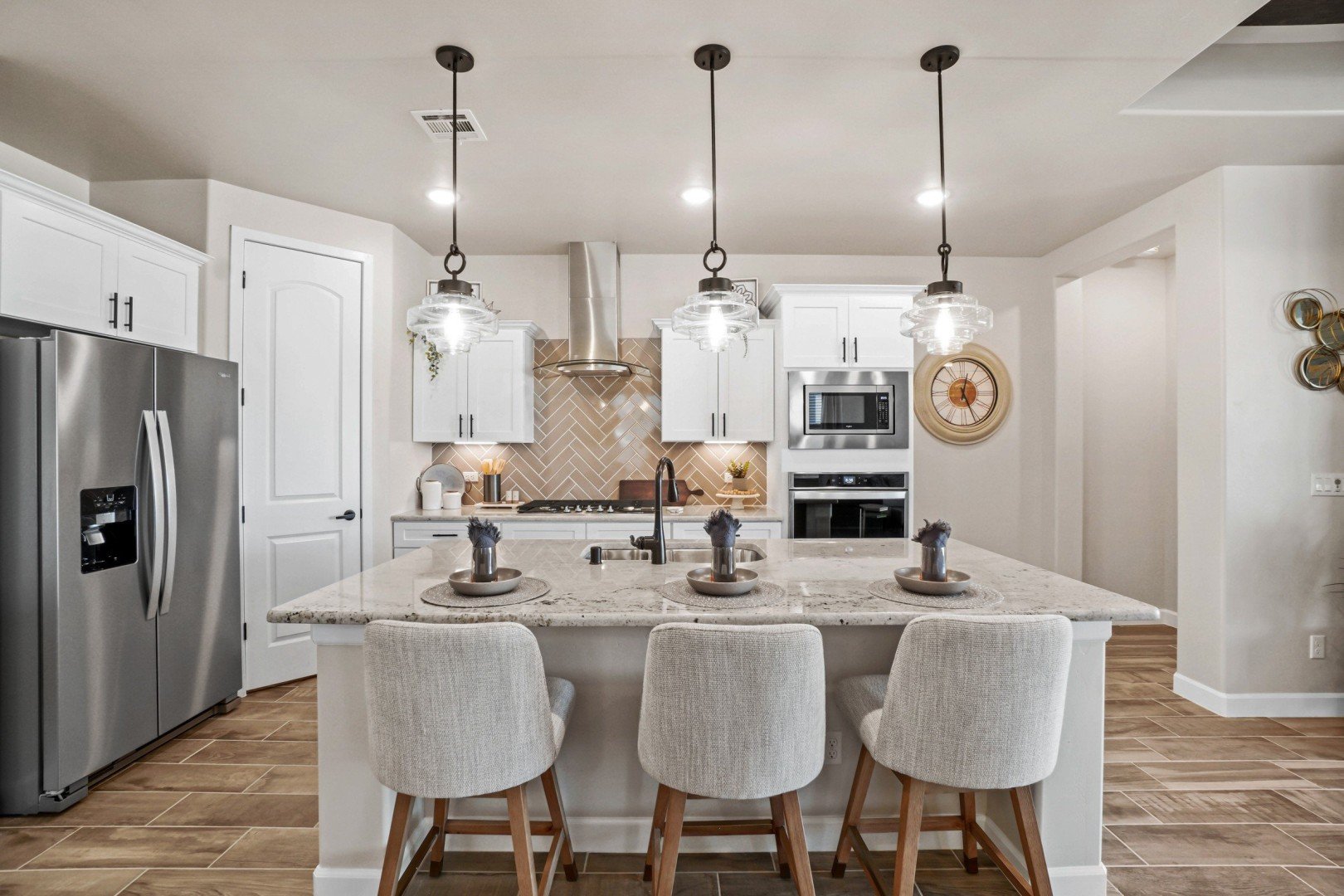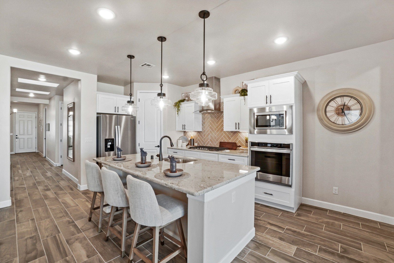 The Picacho floor plan features five bedrooms, and an open-concept great room that seamlessly flows into the kitchen and dining area. The spacious master suite includes a walk-in closet. While the covered patio extends the living space outdoors. With a variety of customization options, including an optional guest suite, gourmet kitchen, and deluxe master bath, this home offers the perfect blend of comfort and flexibility to fit your lifestyle.