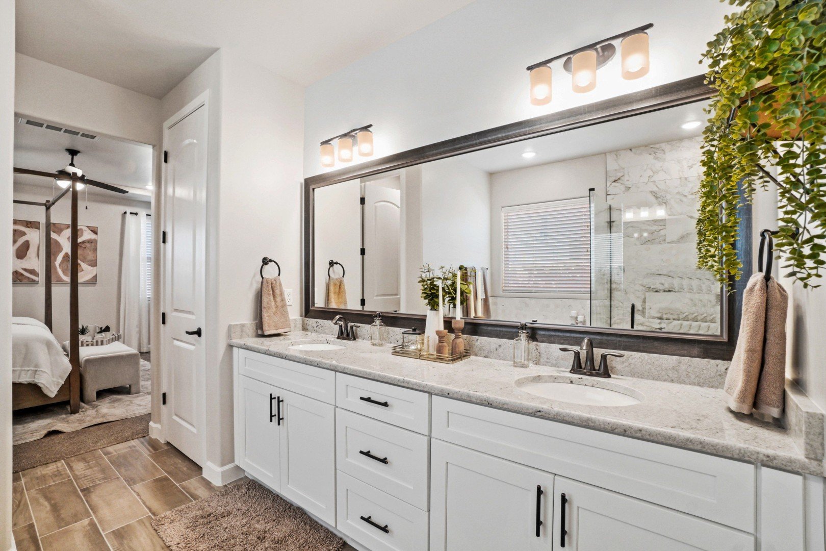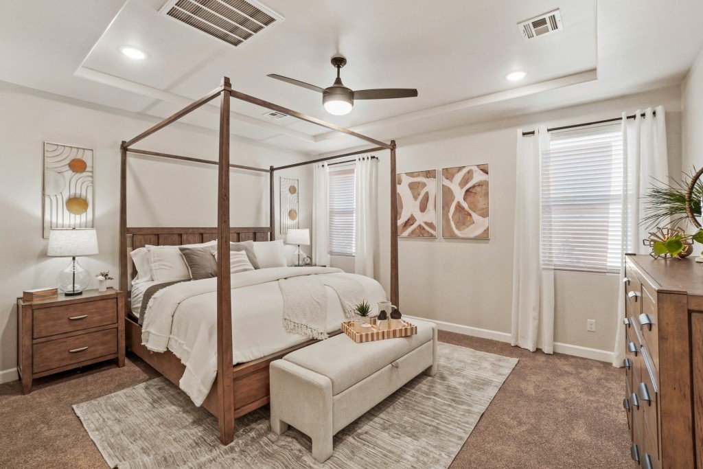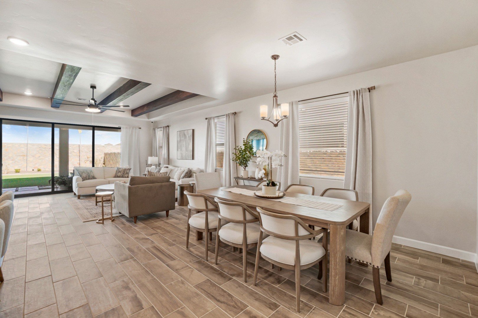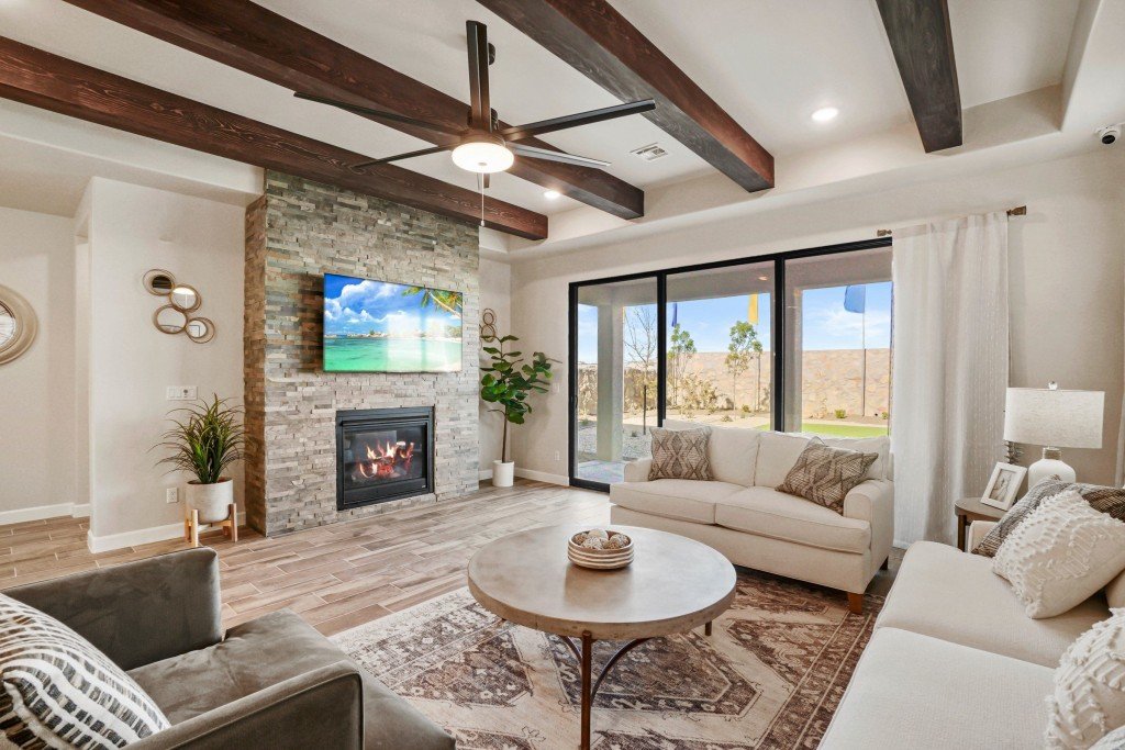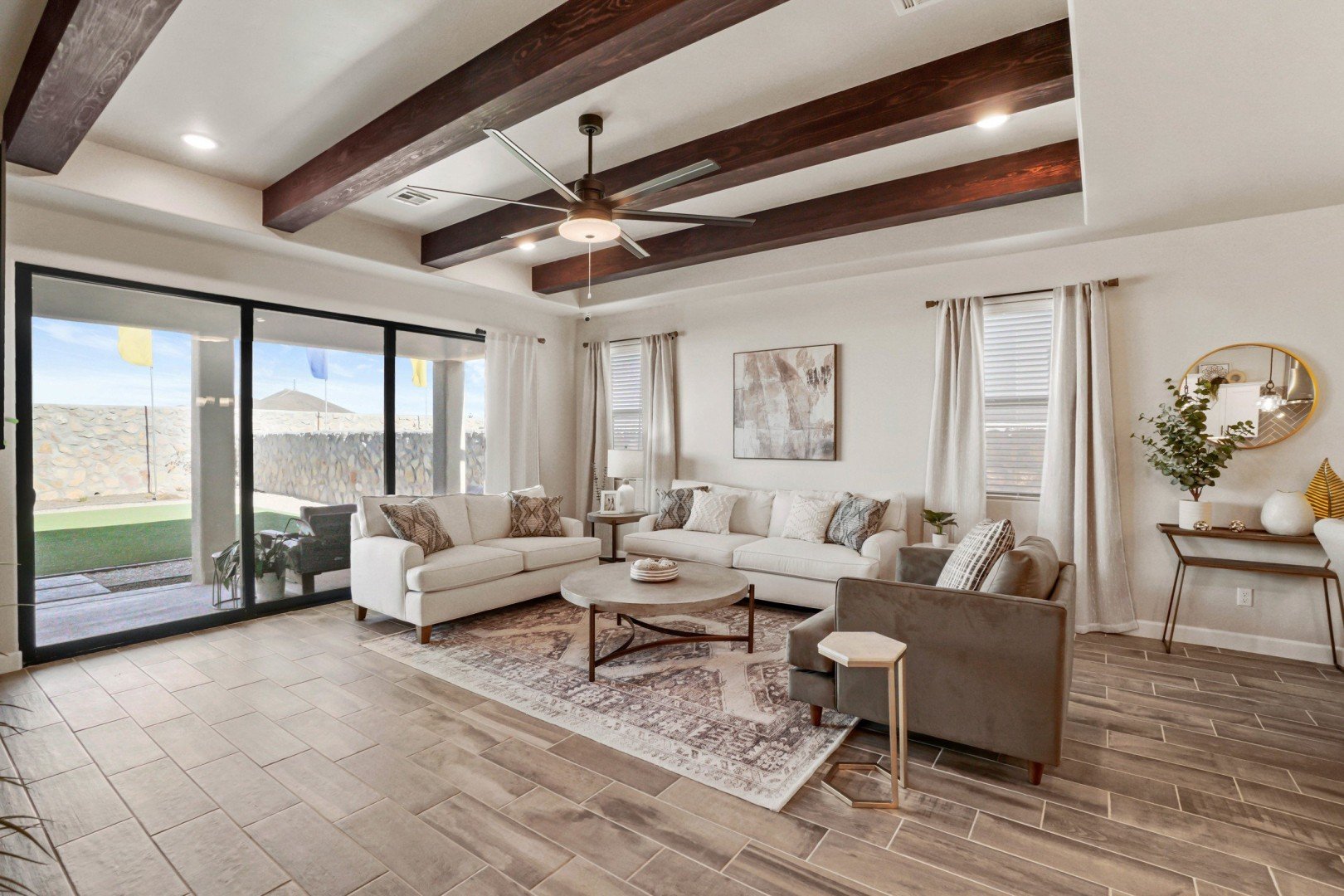 The Picacho floor plan features five bedrooms, and an open-concept great room that seamlessly flows into the kitchen and dining area. The spacious master suite includes a walk-in closet. While the covered patio extends the living space outdoors. With a variety of customization options, including an optional guest suite, gourmet kitchen, and deluxe master bath, this home offers the perfect blend of comfort and flexibility to fit your lifestyle.