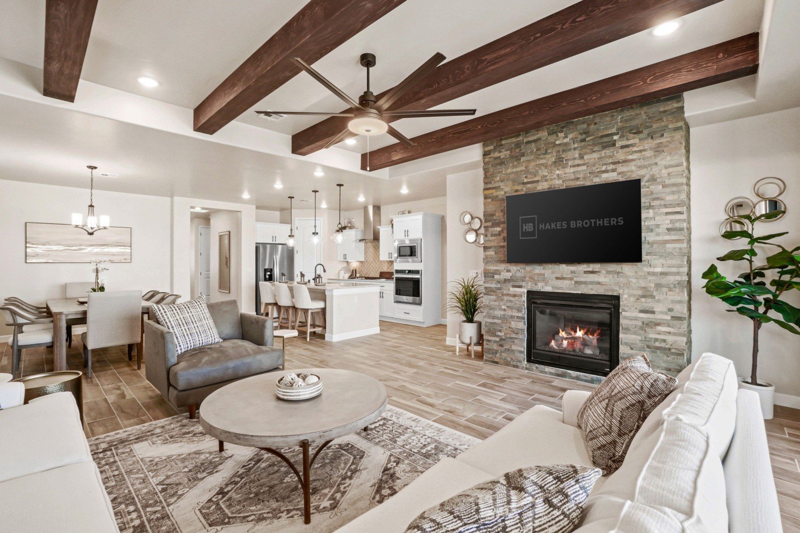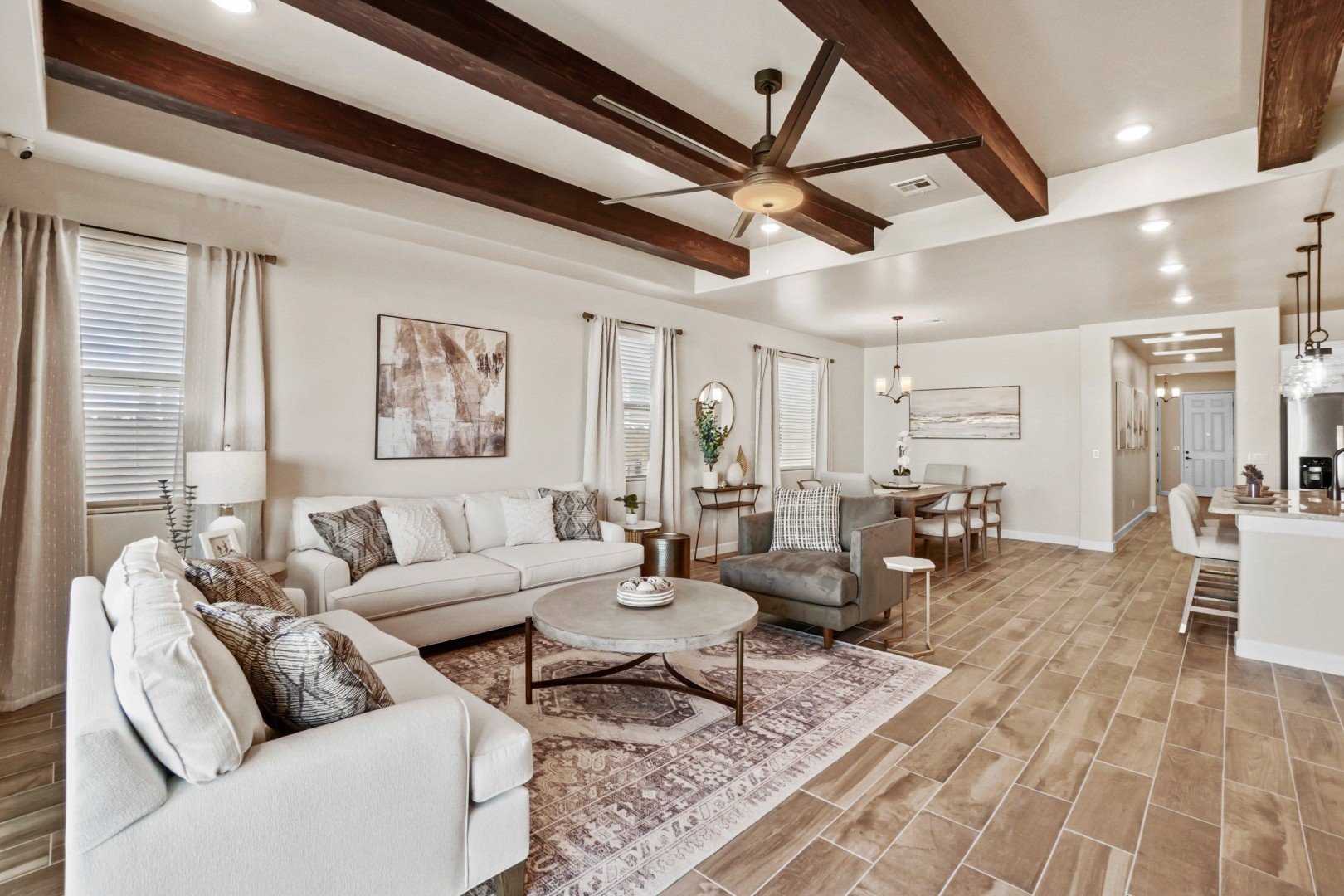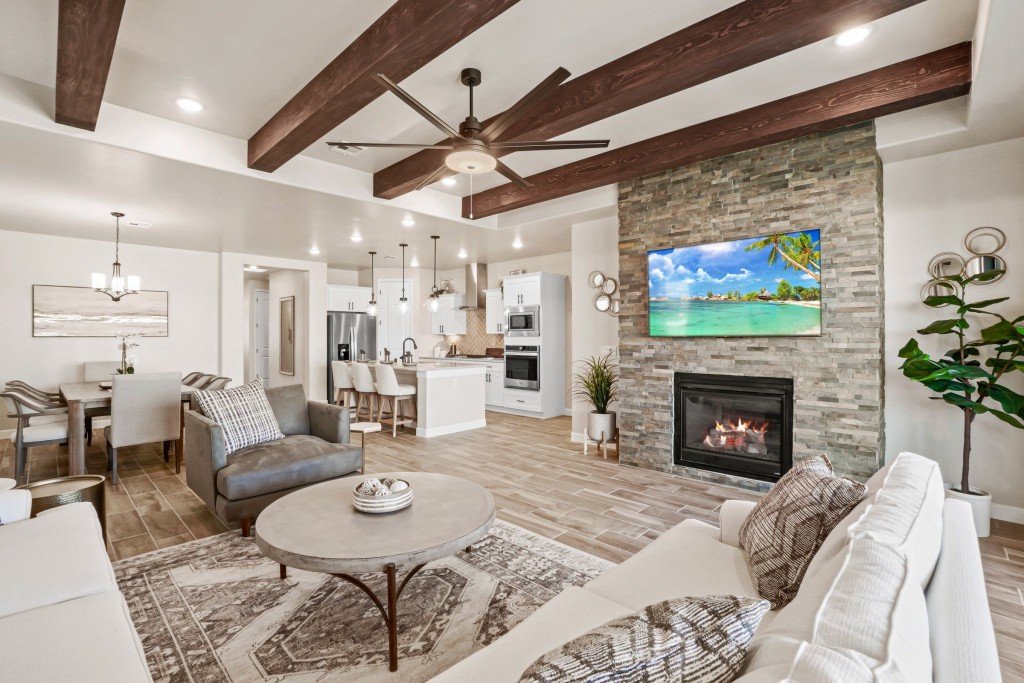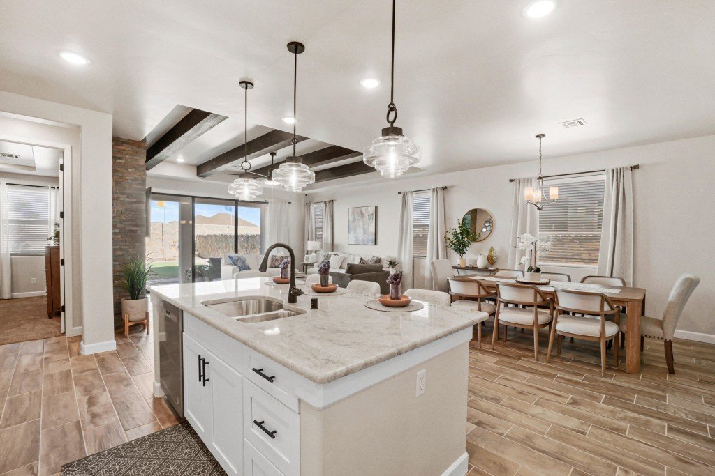 - Open-concept design with a spacious great room, dining area, and kitchen.