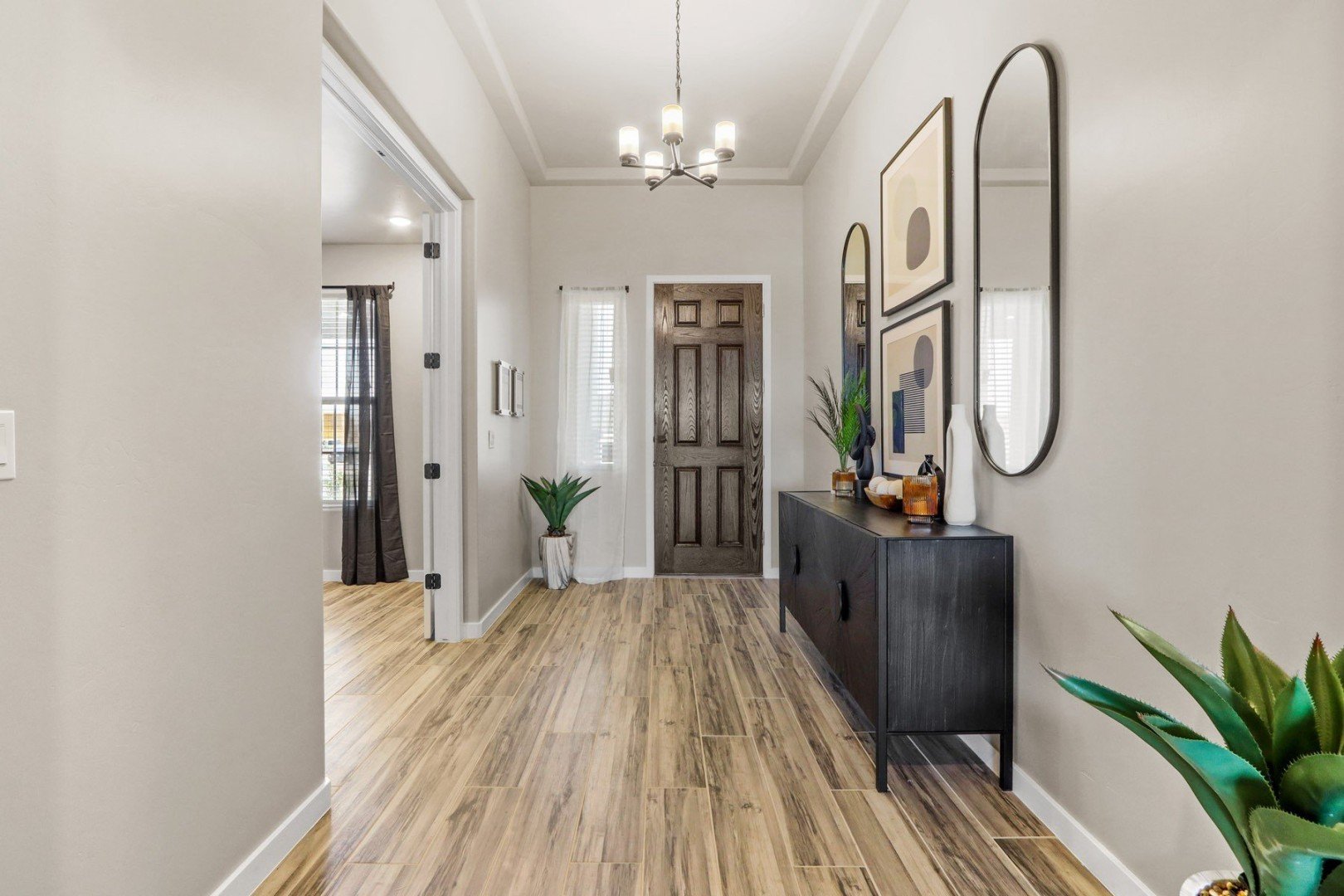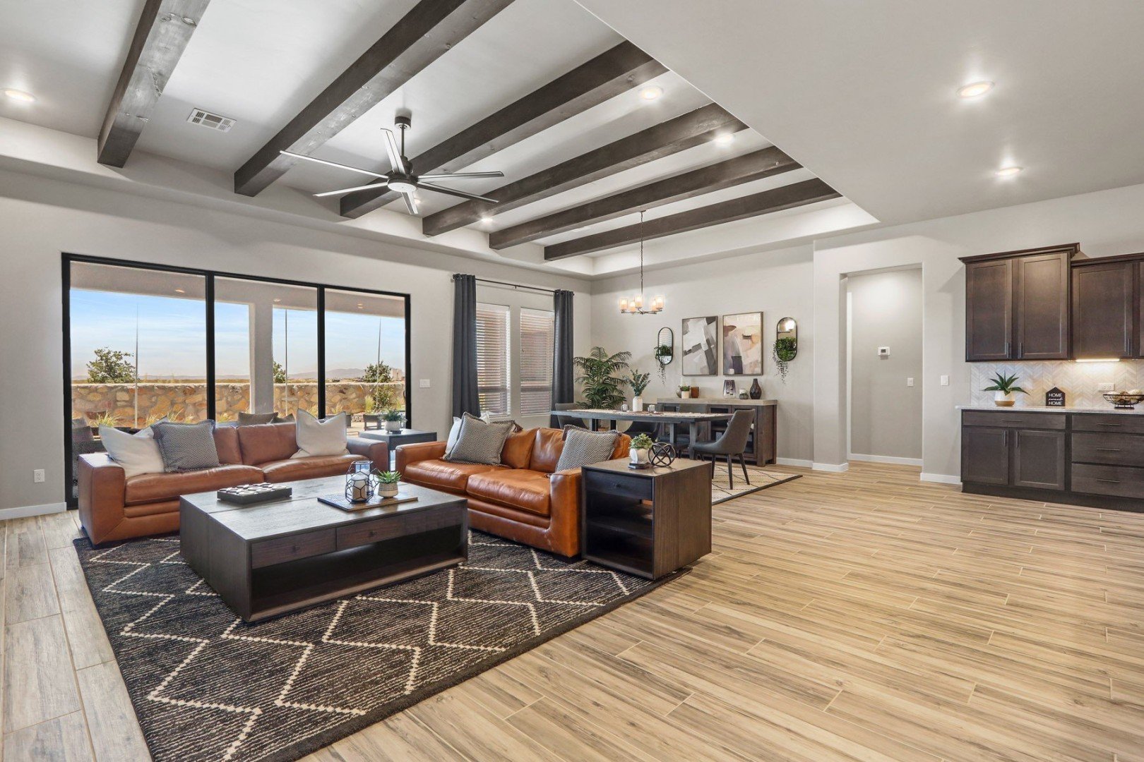 - Designer options include a barn door in the owner’s suite, a 3-panel stacking door in the great room, multiple fireplace choices, an extended patio, and more