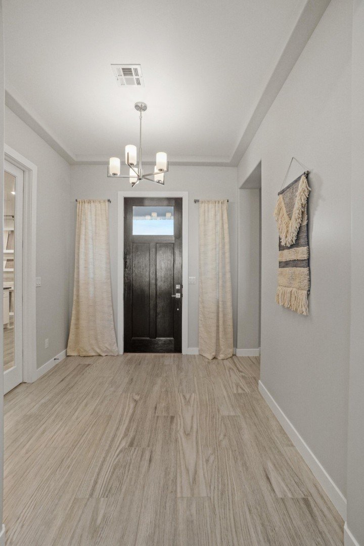- Welcoming entry provides views into the great room and through to the scenic outdoor patio