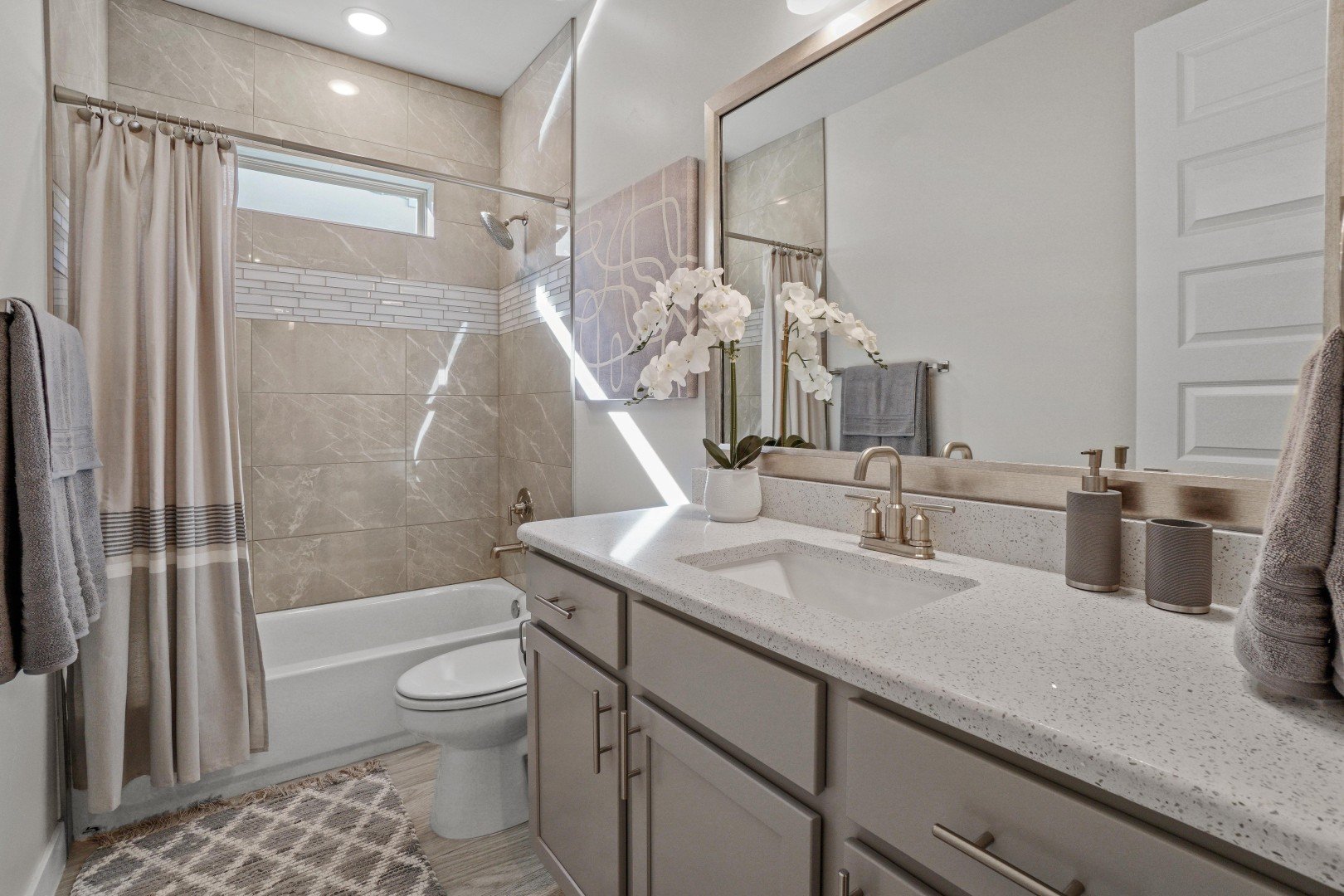 - Modern kitchen with large pantry, ample counter space, and central island is perfect for entertaining
