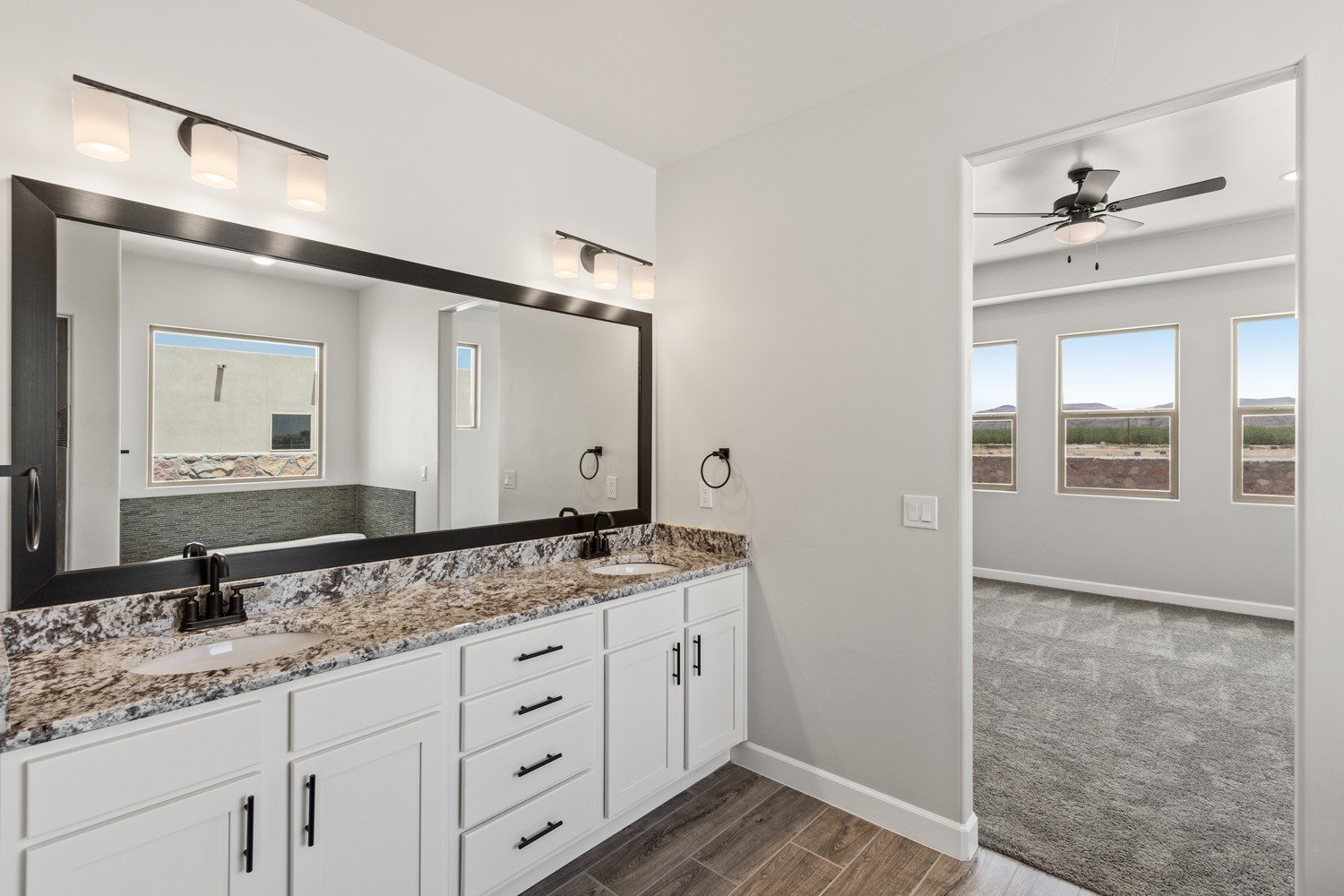 - Elegant owner suite features abundant windows and beautiful bath retreat with large walk-in closet