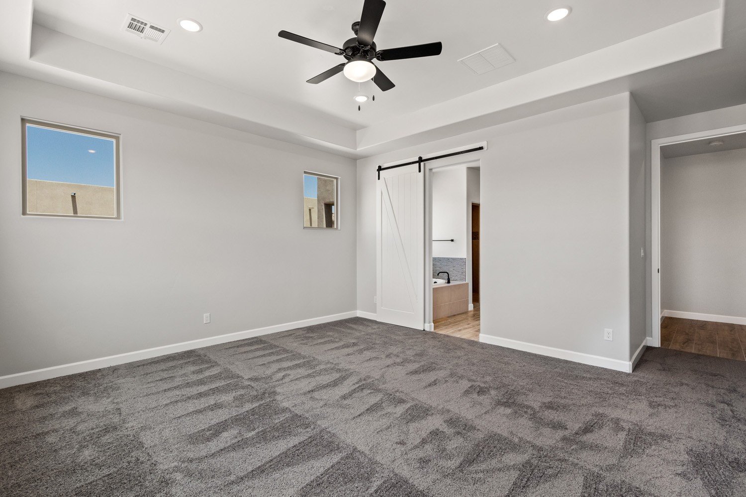 - Decorative tray ceilings add depth and impact throughout the home