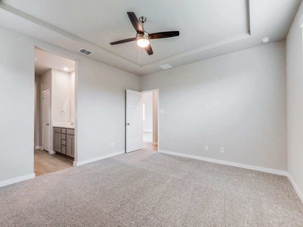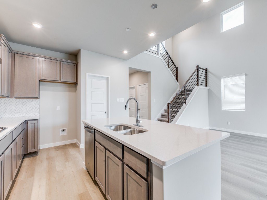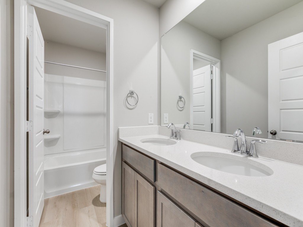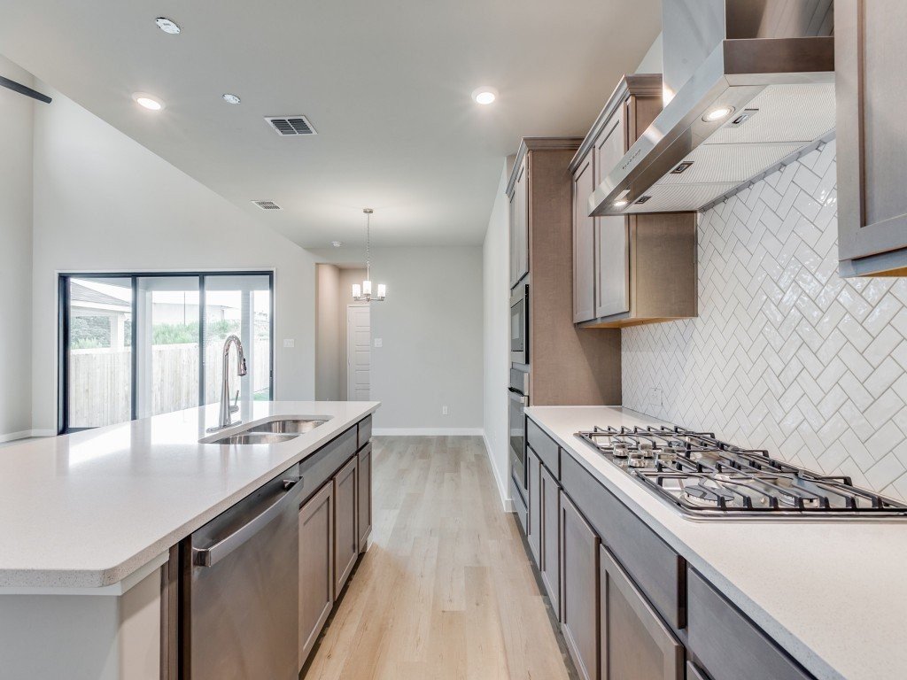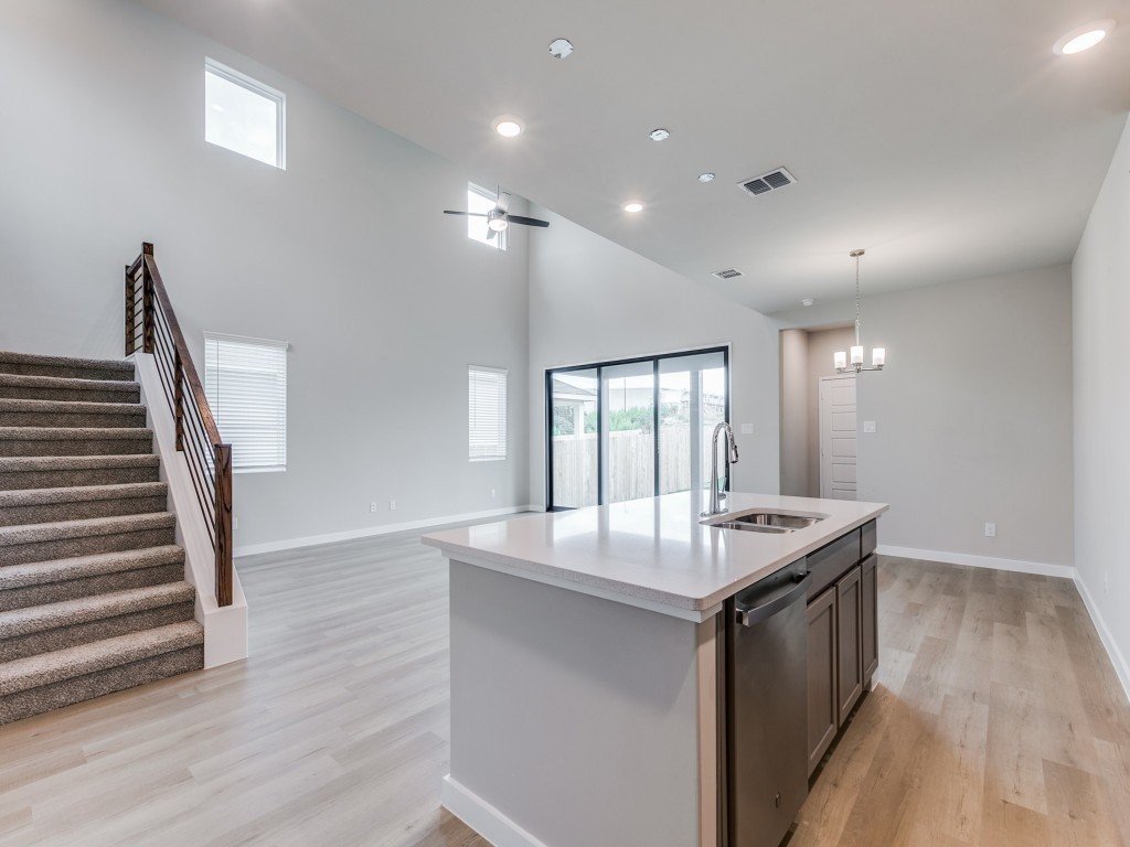 The Bandera floor plan combines modern sophistication with family-friendly functionality, offering a thoughtfully designed two-story layout perfect for today’s lifestyle. Step through the inviting front porch and into the foyer, where a versatile flex room greets you—ideal for a home office, study, or playroom. Continue through the hallway into an expansive, light-filled open living area. The kitchen is a chef’s dream, featuring sleek countertops, a central island with seating, abundant cabinetry, and a walk-in pantry for all your storage needs. The adjoining dining room provides the perfect setting for meals, while the great room offers a cozy yet spacious retreat for relaxation or entertaining. Tucked at the rear of the home, the owner’s suite offers a private haven with a spa-inspired ensuite, complete with dual vanities, a luxurious walk-in shower, and a generous walk-in closet. Upstairs, a large loft provides a versatile space for a media room, study, or play area, while an additional full bathroom and three secondary bedrooms ensure everyone has their own private retreat. Additional features of the Bandera include a centrally located laundry room, a two-car garage, and a covered patio that extends your living area outdoors, offering the perfect spot for morning coffee or evening gatherings.