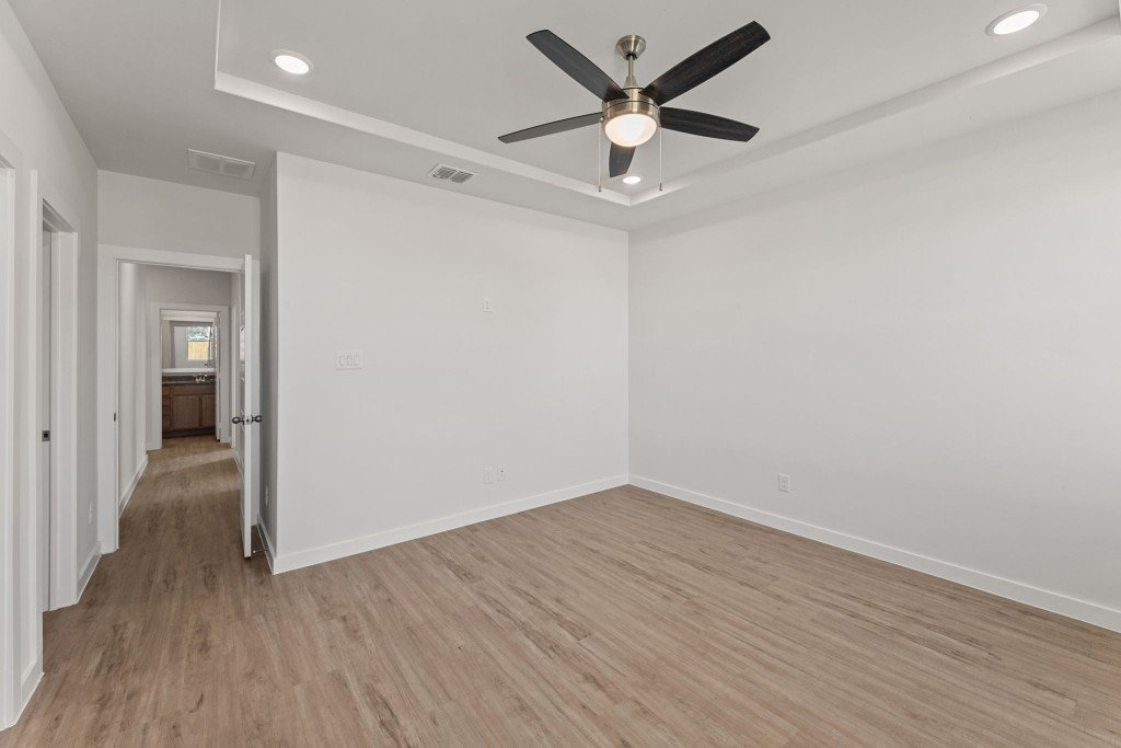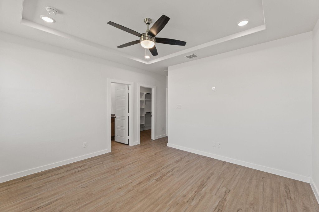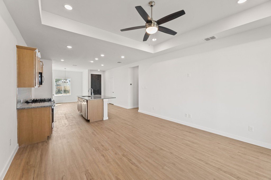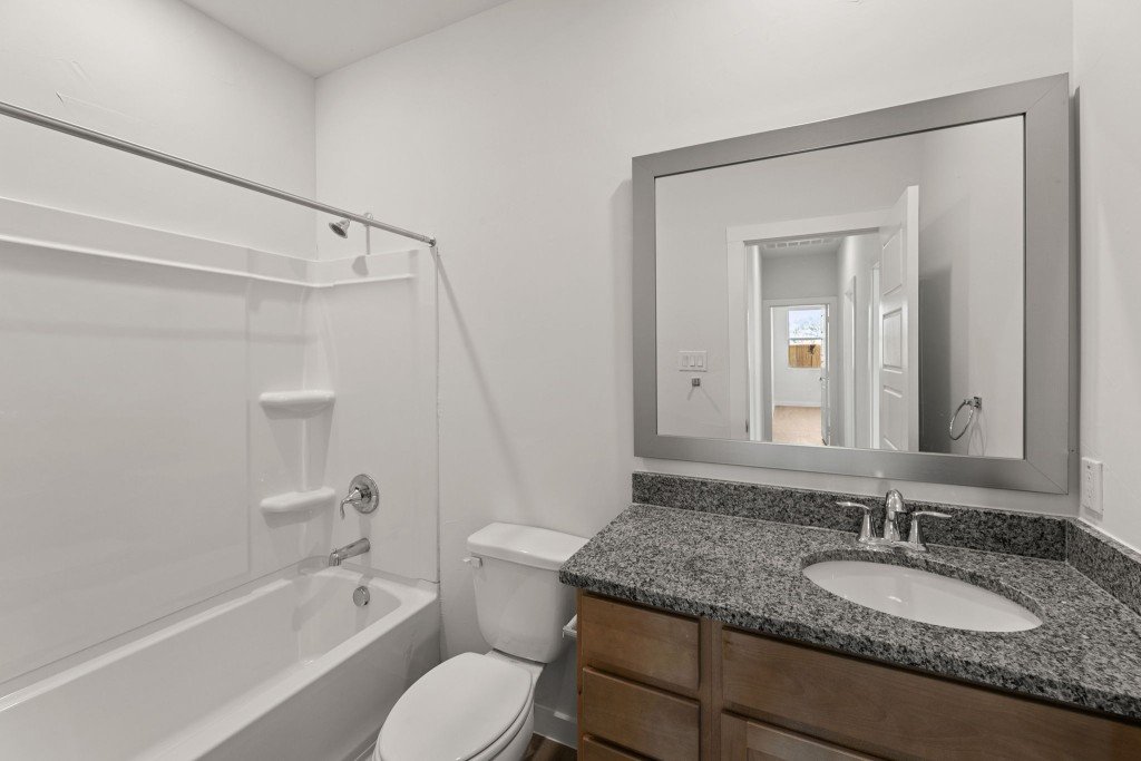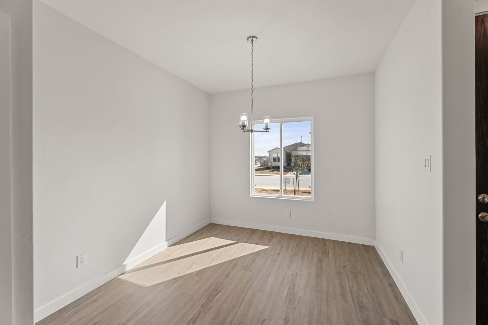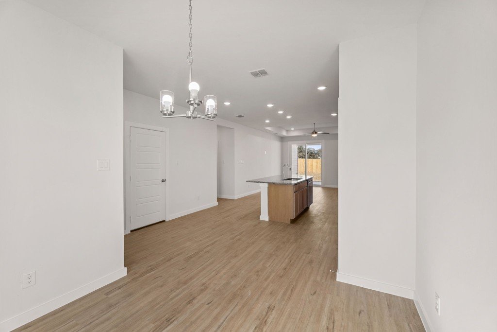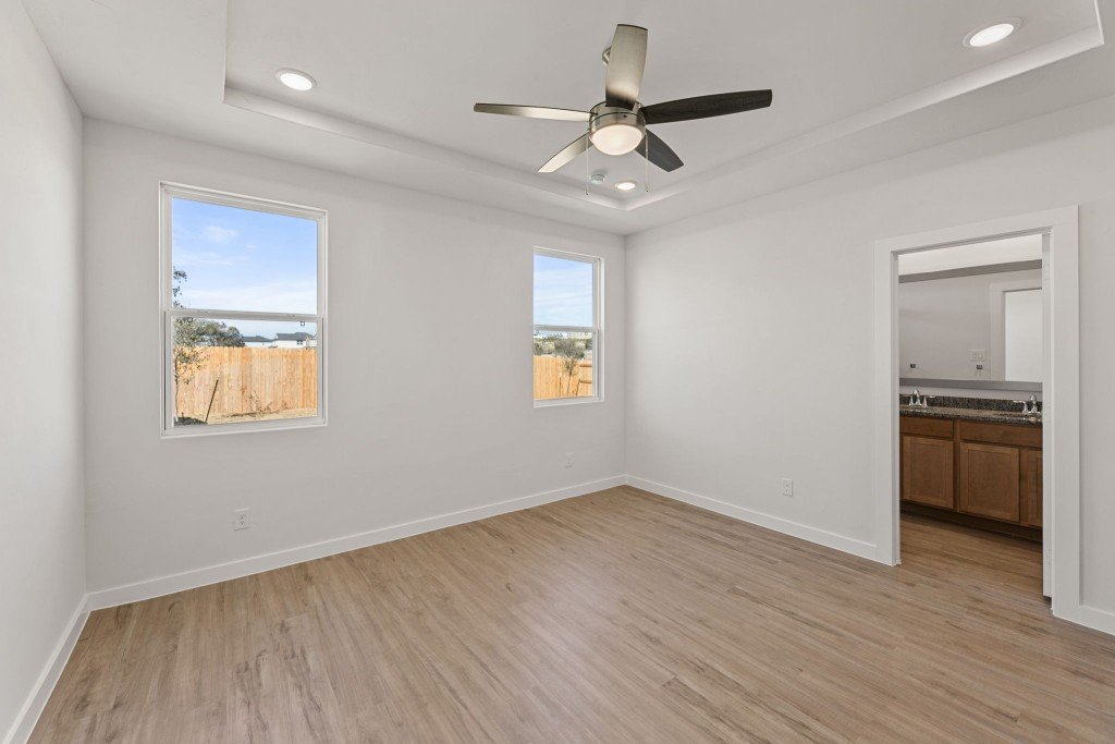 The Clovis combines modern style with family-friendly functionality in a thoughtfully designed single-story layout. Step through the charming front porch, an ideal spot to enjoy your morning coffee or greet neighbors, and into the heart of the home. The expansive open-concept living area creates a warm and welcoming atmosphere. The kitchen is a chef’s delight, featuring sleek countertops, a large center island, and ample cabinetry for all your cooking essentials. Adjacent to the kitchen, the dining area provides the perfect space for family meals, while the great room offers a bright and airy retreat with large windows that frame serene backyard views. The master bedroom is a relaxing sanctuary, complete with a spa-inspired ensuite featuring double vanities, a walk-in shower, and a spacious walk-in closet. The two secondary bedrooms, positioned near the main living areas, provide comfort and flexibility for family members, guests, or even a home office. The outdoor living spaces are equally inviting. A covered backyard patio creates a seamless indoor-outdoor flow, perfect for hosting gatherings or unwinding in the fresh air.